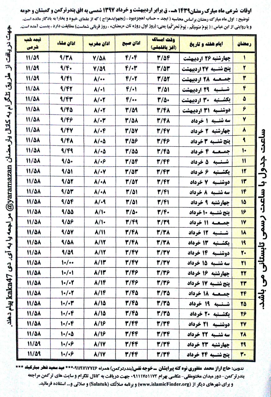 دانلود جدول اوقات شرعی ماه مبارک رمضان 1439 هـ . ق